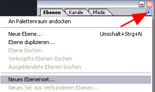 Dazu im Ebenenfenster rechts auf den Pfeil klicken