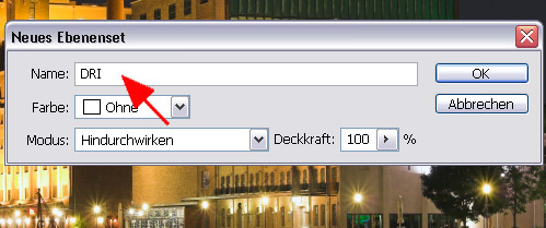 Als Name für das neue Ebenenset vergeben wir : DRI