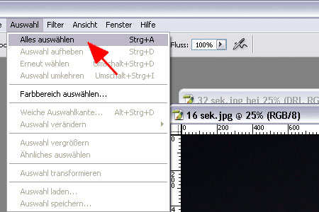 hier das Bild mit 16 sek. Belichtungszeit in Photoshop geöffnet